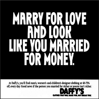 Возможно, лучше всего эта мысль была выражена в рекламном объявлении этой же самой розничной сети магазинов (рис. 119). Заголовок переводится так: «Когда брак по любви выглядит браком по расчету».