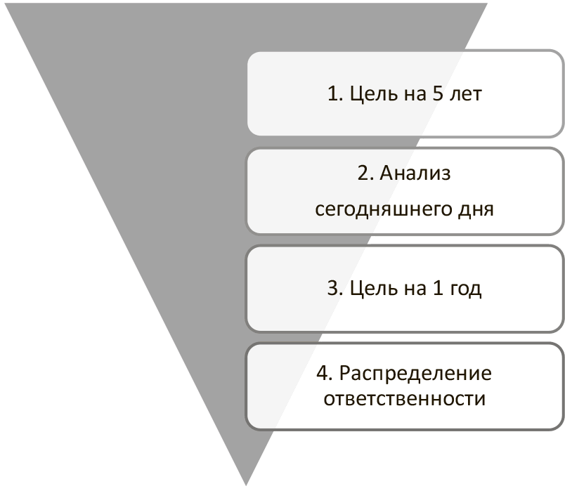 1. Определить цель развития организации, например, на пять лет вперед («Чего же мы хотим?»).