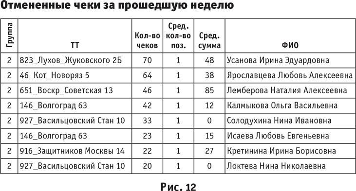 А пример отчета, который позволяет продавцу без каких-либо проблем отменять чеки, а помощникам по рознице видеть количество отмен за любой период, показан на рис. 12.