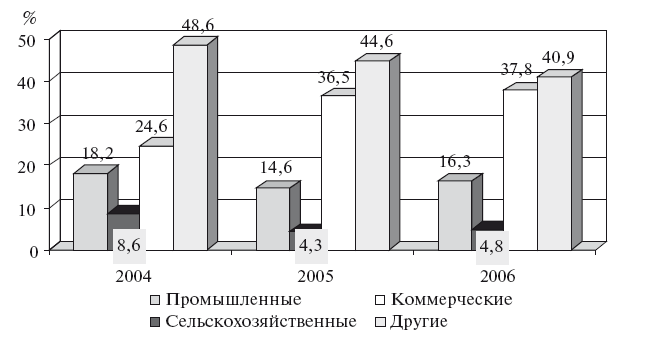 Рис. 1.3. Структура ввода в эксплуатацию нежилых зданий в России, доля от общего объема вводимых в эксплуатацию зданий