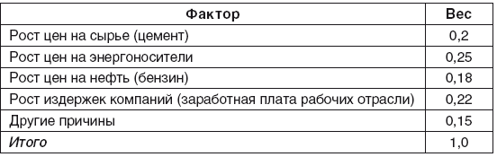 Основными факторами, влияющими на изменение цен, по данным опроса экспертов, являются следующие (табл. 1.2).