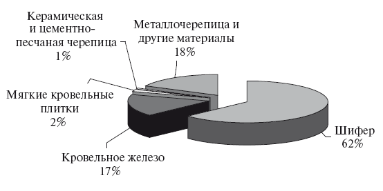 Согласно статистическим данным, приводимым рядом экспертов, по итогам 2006 г. суммарный объем потребления кровельных материалов для скатных крыш превысил 210 млн кв. м. Самым значительным видом из числа этих материалов был шифер – 62%-ная доля рынка (рис. 1.8).