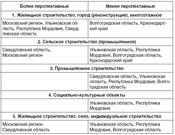 Наименее экономически развитые регионы являются наиболее привлекательными с точки зрения долгосрочной перспективы развития рынка асбоцементного шифера, рекламных вложений, развития сбытовой сети. Потребление шифера в глубинке России еще долго будет достаточно активным.