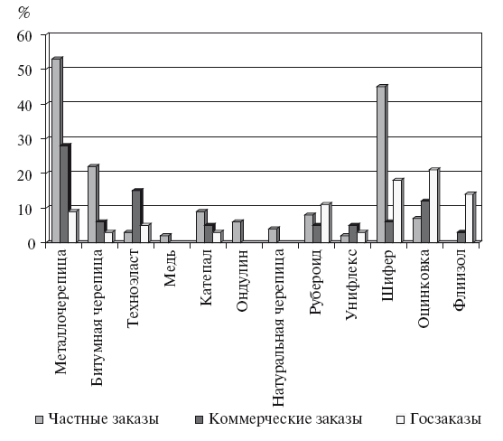 Рис. 1.10. Кровельные материалы, чаще всего используемые на заказах