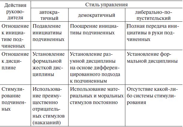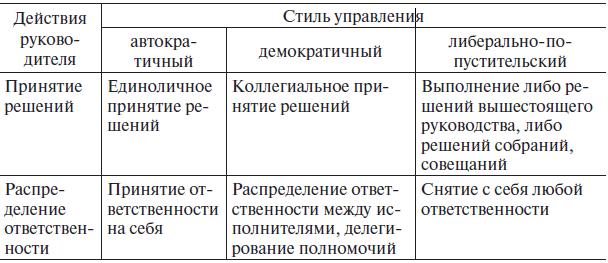 Характеристика всех перечисленных стилей управления приведена в табл. 8.2.