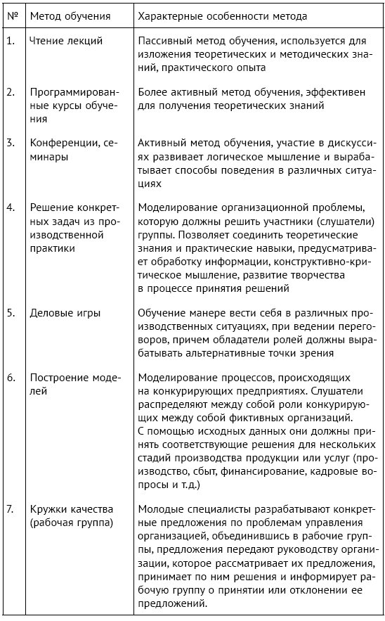 Таблица 20. Методы обучения персонала вне рабочего места