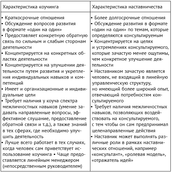 Таблица 22. Сравнение концепций коучинга и наставничества