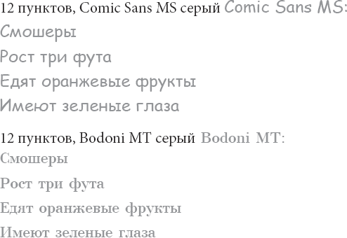 Примечание. Приведенные примеры набраны теми же шрифтами, которые использовались в эксперименте, хотя и содержат совсем другие данные.