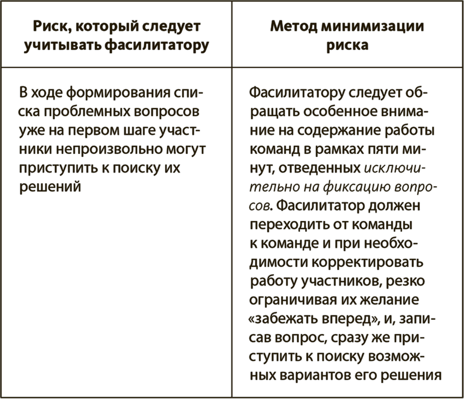 Действуя таким образом, каждая команда выносит на обсуждение по две-три ключевые проблемы, не повторяя при этом аналогичные или однотипные ситуации, уже озвученные коллегами.