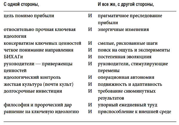 Иррационально? Возможно. Редко встречается? Да. Трудно? Исключительно. Но, как подметил Ф. Скотт Фитцджеральд, «проверкой подлинного разума является способность удерживать в сознании две прямо противоположные идеи и при этом сохранять способность действовать»[99]. Именно это умение и отличает великие компании.