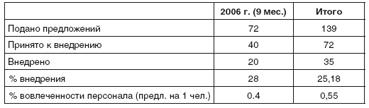 • положение по инновациям (результат – вовлеченность персонала в процесс непрерывных улучшений).