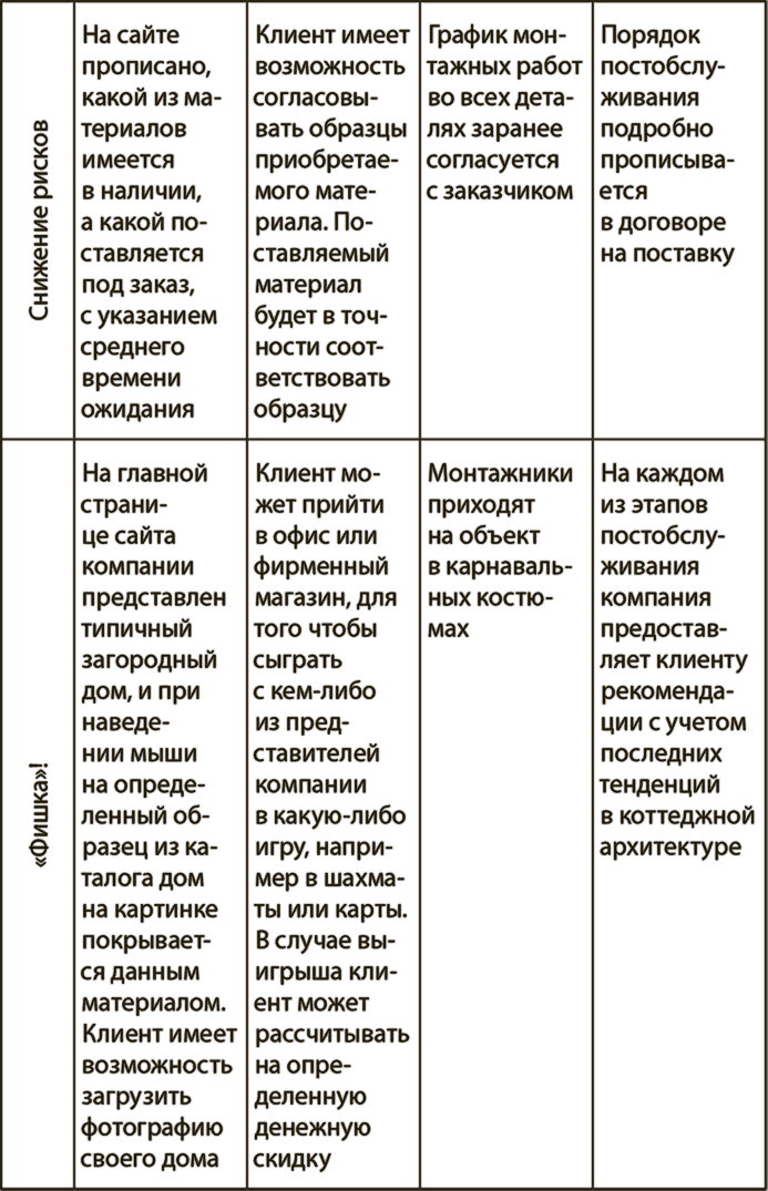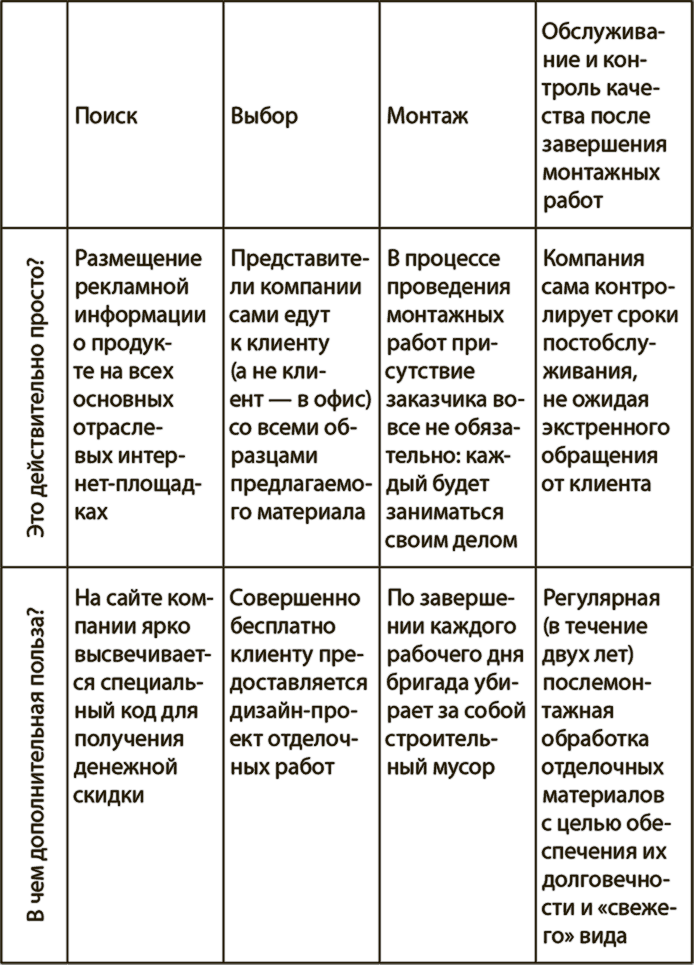 В таблице ниже приведен пример потребительской цепочки с указанием реальной выгоды для клиента (в данном случае – при покупке отделочных материалов для фасада частного дома с последующими монтажными работами).