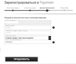 На этом шаге нужно придумать пароль к вашему аккаунту, выбрать секретный вопрос и ответ на него. Обратите внимание, что, хотя вопрос и выбирается на русском языке, ответ должен быть записан латинскими буквами. Отнеситесь к этому пункту серьёзно, эта информации понадобится в случае спорных ситуаций или для восстановления вашего пароля. Снова жмём «Продолжить» и попадаем на последний шаг: