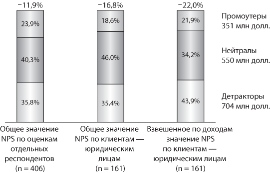 Рис. 2.3. NPS компании АВС, взвешенный по объему доходов