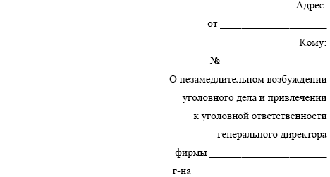 б) привлечь к уголовной ответственности__________________ – – генерального директора фирмы ____________________ – – г-на за хищение в особо крупных размерах;