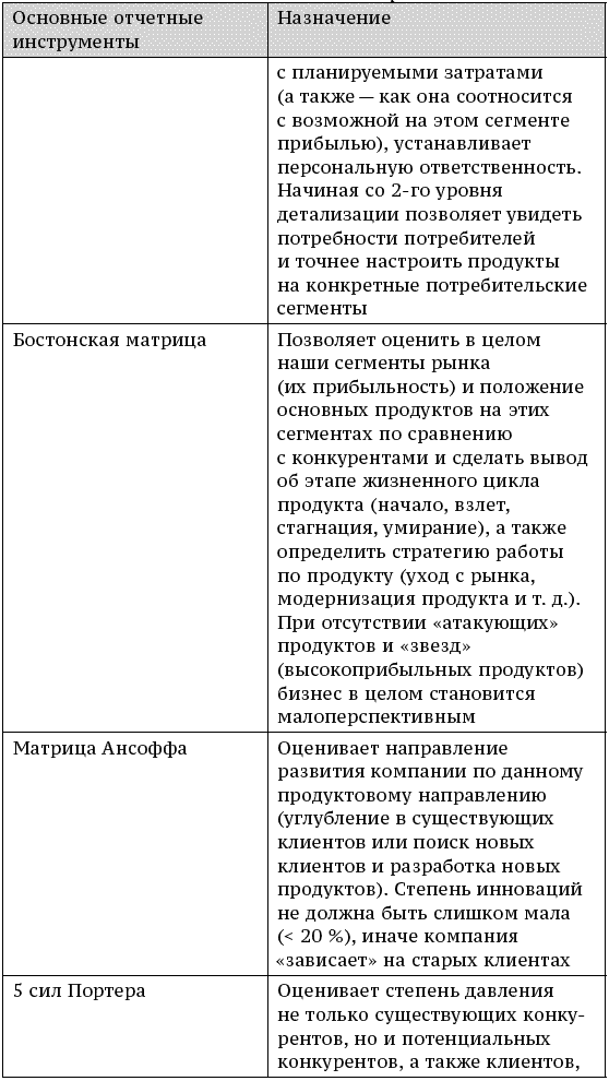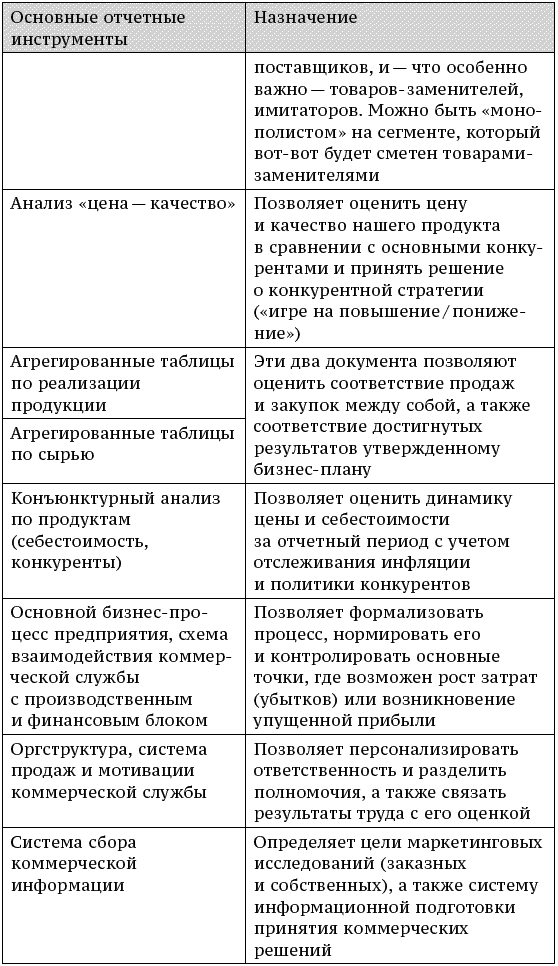 Приказом по предприятию утвержден был следующий документ «Основные отчетные инструменты и проекты коммерческих решений» (табл. 2.21). В приложениях были приведены пояснения и форматки для заполнения.