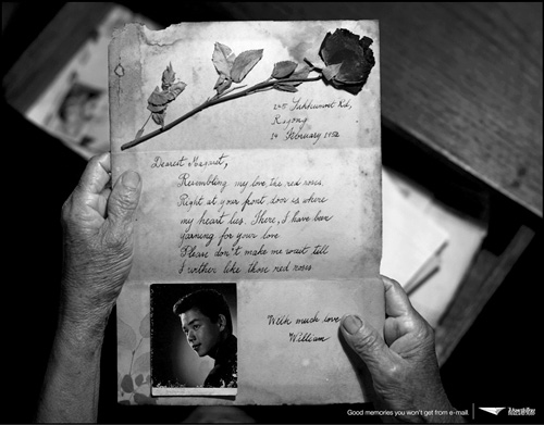 Национальная почтовая служба Таиланда провела широкую рекламную кампанию под девизом «Хорошие воспоминания невозможно передать по электронной почте». Морщинистые руки держат пожелтевшее от времени письмо, написанное 14 февраля 1952 года (рис. 107).