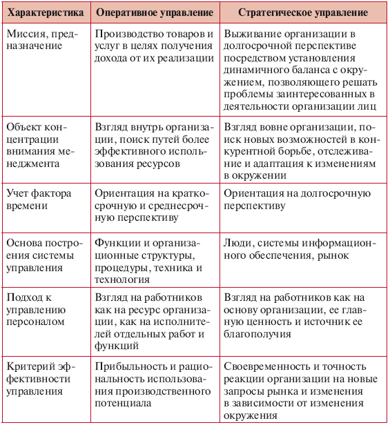 Сравнение оперативного и стратегического управления (О.С. Виханский, с. 31)