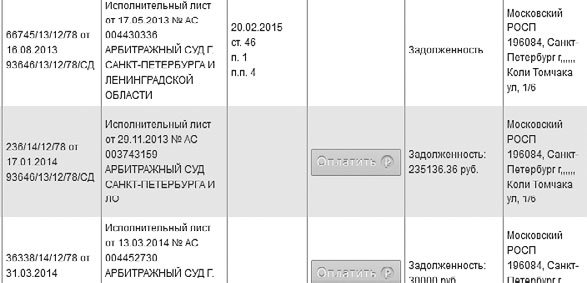 В базе данных исполнительных производств имеется внушительный список исполнительных производств, относящихся к этой компании, который говорит нам если не о реальном банкротстве, то об обязательном его наступлении в скором будущем.