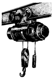 Электрическая таль (рис. 7) – механизм с электроприводом для вертикального и горизонтального перемещения груза, подвешенного на крюк. Горизонтальное перемещение осуществляется вдоль подвесного однорельсового пути. Управляют ею с помощью кнопочного механизма. Выпускается грузоподъемностью 0,5; 1; 5 и 10 т. Рассчитана на высоту подъема груза от 4 до 30 м.