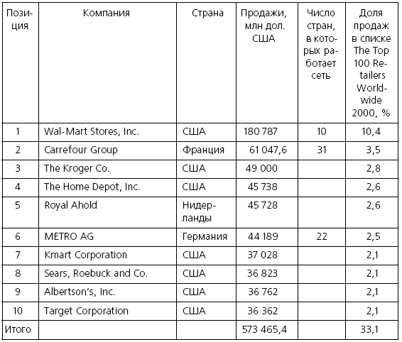 Десять лучших мировых розничных торговых сетей списка The Top 100 Retailers Worldwide 2000[2]