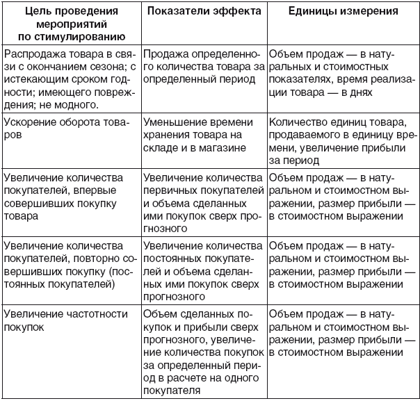 Показатели оценки экономического эффекта стимулирования