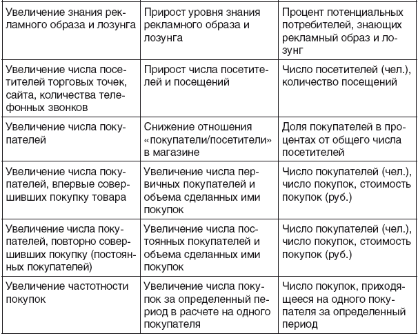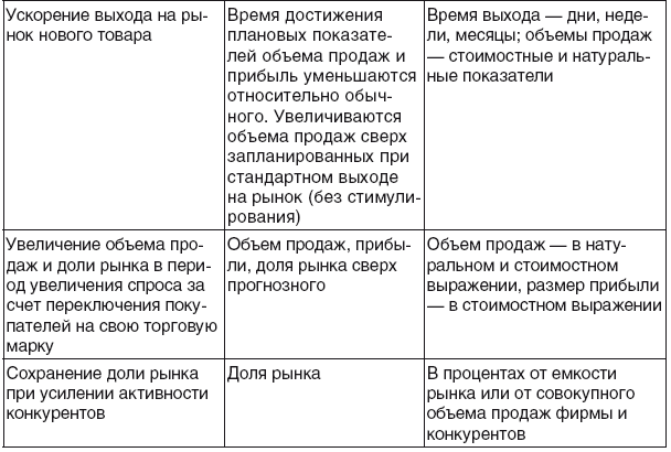 Также можно привести в пример основные группы эффектов, получаемых в результате проведения программ продвижения для удобства их оценки (табл. 6.4 и 6.5) [2].