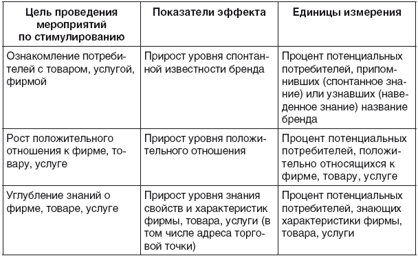 Показатели оценки коммуникационного эффекта стимулирования