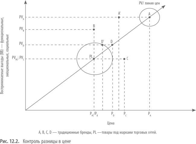2. Если цена товара под брендом производителя находится примерно в том же диапазоне, что и цена товара под маркой торговой сети, то даже относительно небольшое снижение цен может дать значительный прирост продаж.
