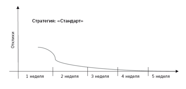 В самом начале публикации мы получим определенный объем откликов, но уже к середине из-за высокой конкуренции они начнут затухать, в результате чем дальше, тем меньше и меньше.