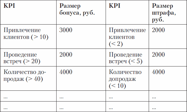 Таблица 8.7. Система бонусов и штрафов по KPI