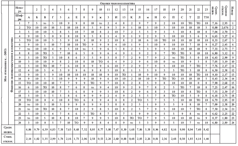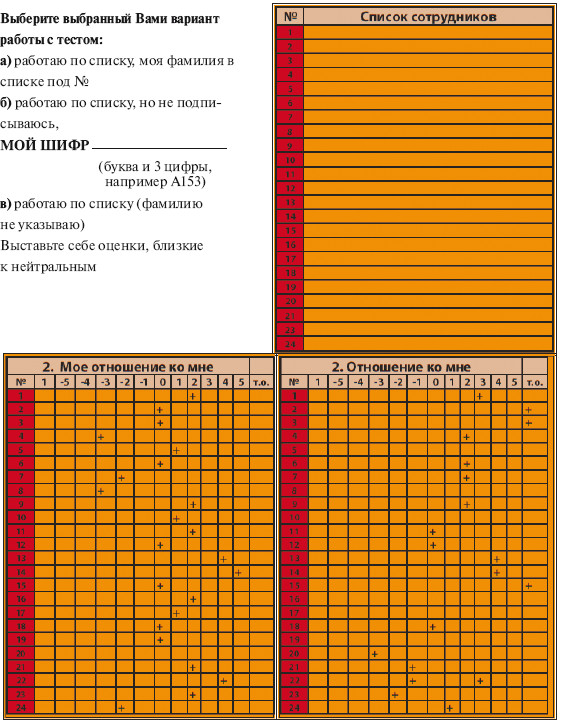 1. Оцените ваше отношение к каждому члену вашего коллектива по шкале от 5 до + 5 баллов, где: