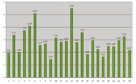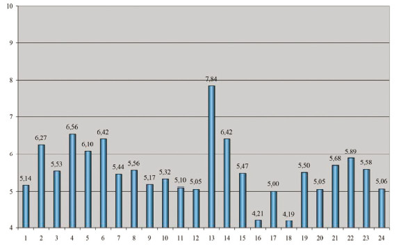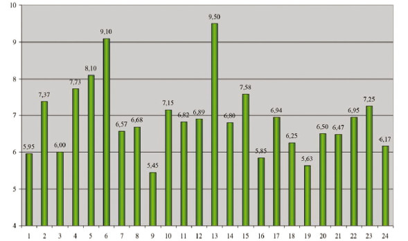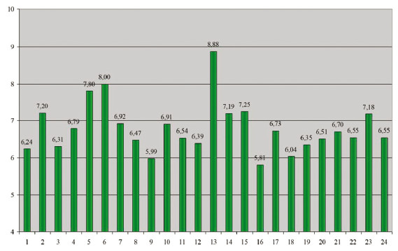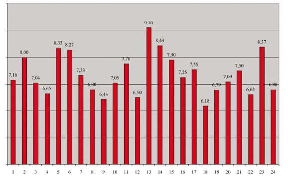 21. Оцените чувство юмора у каждого Вашего коллеги по шкале от 0 до 10 баллов, где: