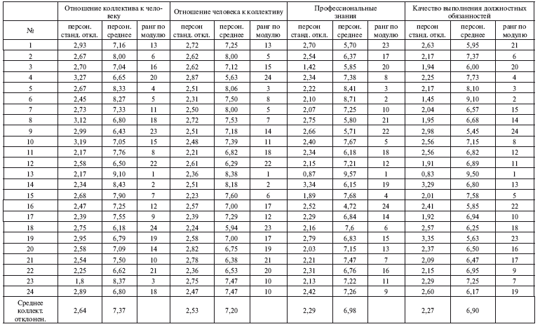 23. Оцените «коллективизм – индивидуализм» каждого сотрудника по шкале от 0 до 10 баллов, где: