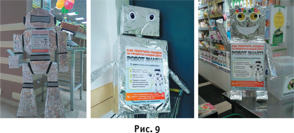 И в этом деле помогло то, что никогда бы не произошло в компании, где линейные сотрудники живут по прописанным офисом стандартам. Работники одного магазина сделали робота из коробок, в которых приходит продукция. Обклеили коробки фольгой, приделали глаза и выставили в торговый зал. Мол, вот он, наш робот-бот.