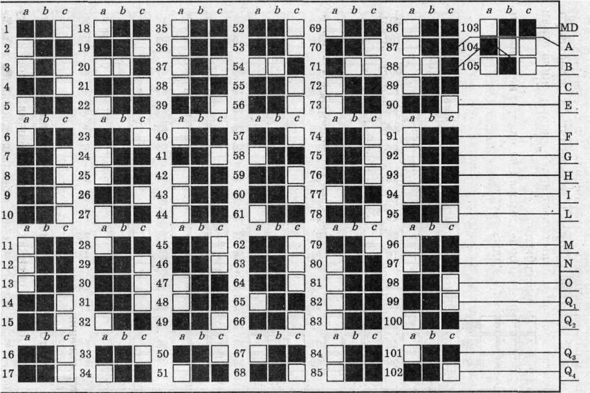 Совпадение ответов «а» и «с» оценивается двумя баллами, совпадение ответа «в» – одним баллом. Сумма баллов по каждой выделенной группе вопросов дает в результате значение фактора. Исключением является фактор В – здесь любое совпадение ответа с «ключом» дает 1 балл.