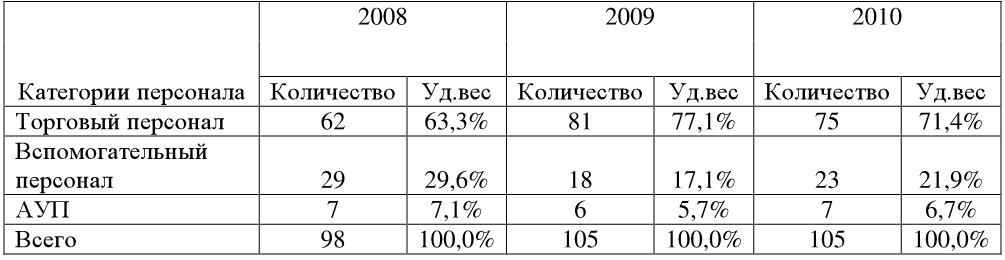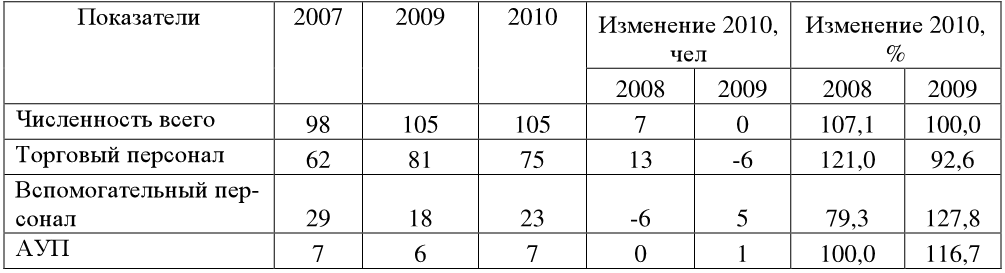 2. Сделайте вывод по динамике трудовых ресурсов предприятия (таблицы 21, 22), как изменяется состав торгового и вспомогательного персонала.