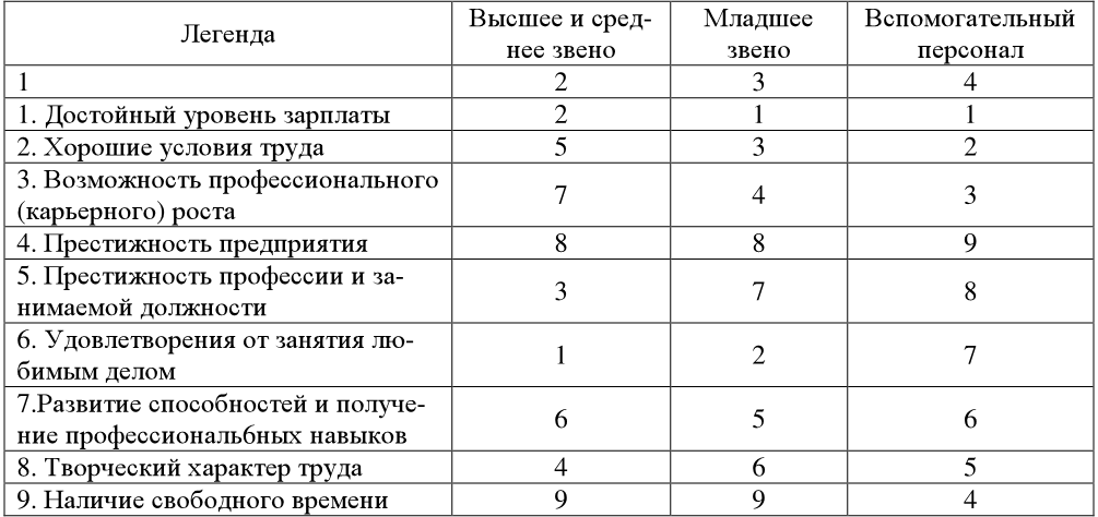 Ранг значимости личных мотивов сотрудников