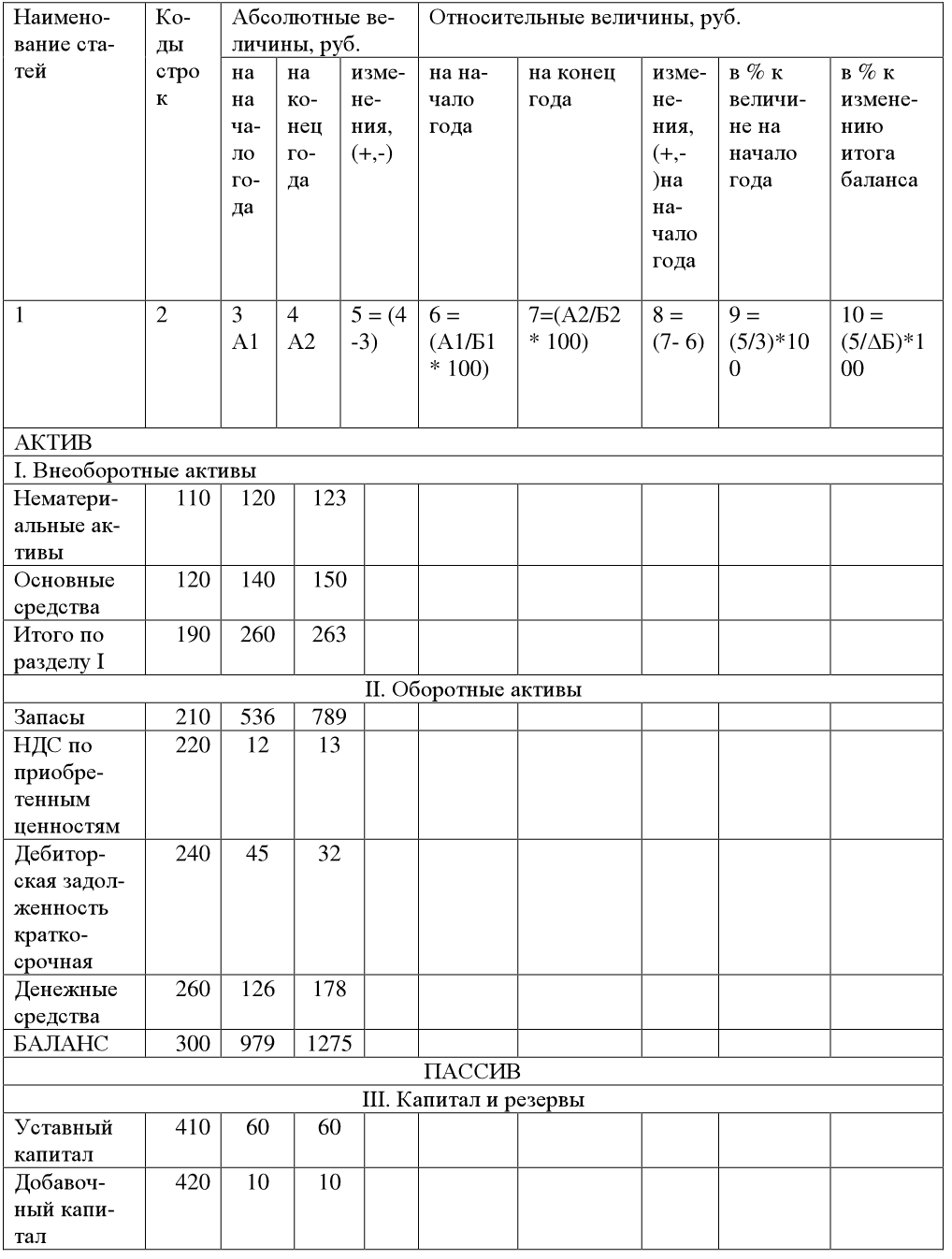 Данный анализ проводится по укрупненным статьям баланса. В таблице 28 даны наиболее часто заполняемые укрупненные статьи.