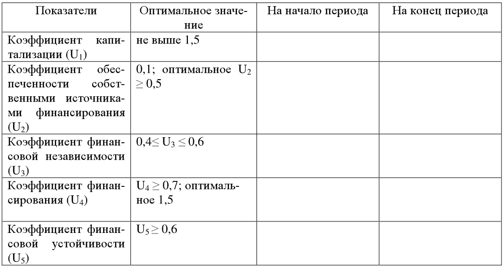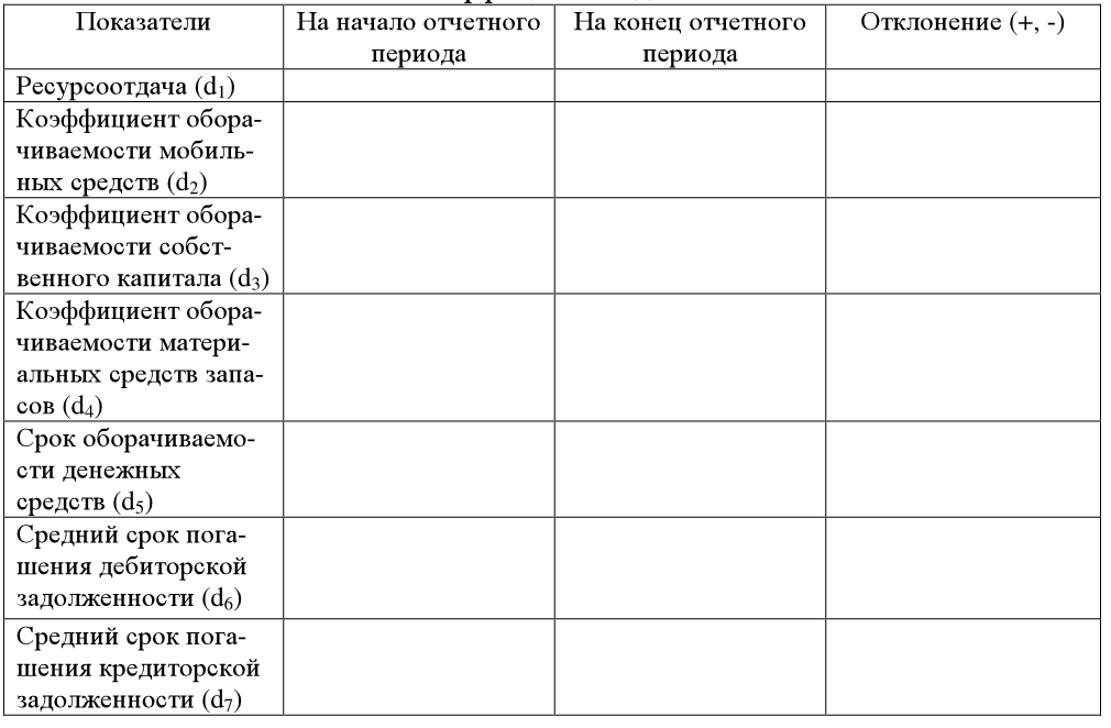 Результаты анализа финансово-хозяйственной деятельности рекомендуется оформить в таблицах, нижеприведенной формы. По каждому направлению анализа сделать выводы.
