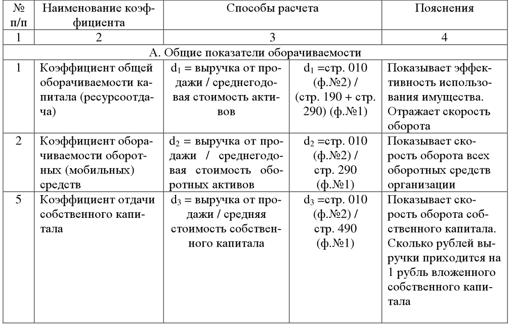 Коэффициенты деловой активности