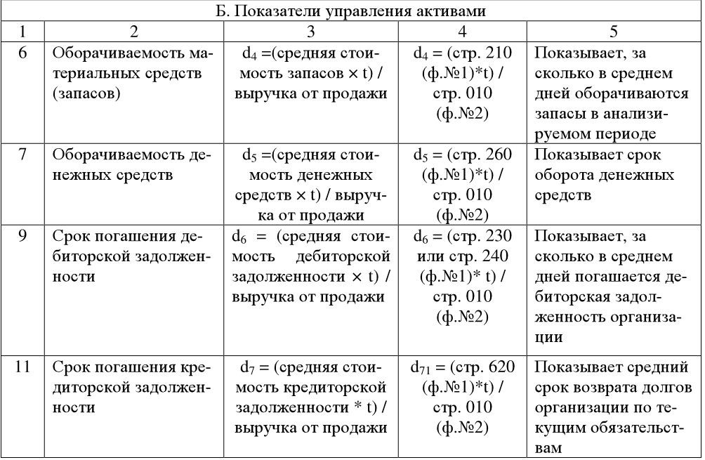 В ходе анализа рассчитываются следующие показатели: