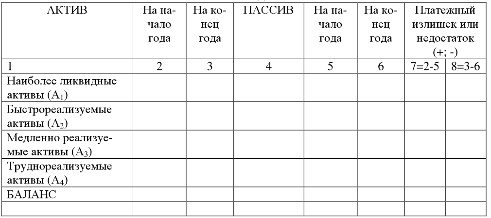 Анализ ликвидности баланса