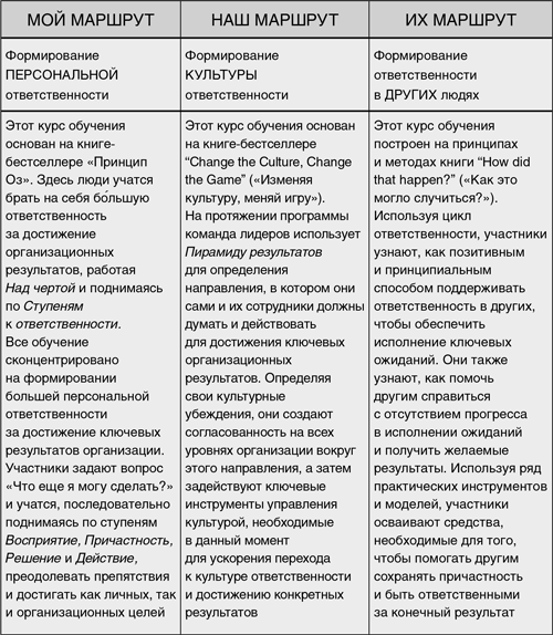 Partners In Leadership предлагает программу обучения «Три маршрута формирования большей ответственности». Испытанный подход обучения этим маршрутам дает результаты, помогая клиентам в достижении ключевых целей организации, таких, как увеличение доходов и рентабельности, снижение затрат и успешная реализация основных организационных инициатив.
