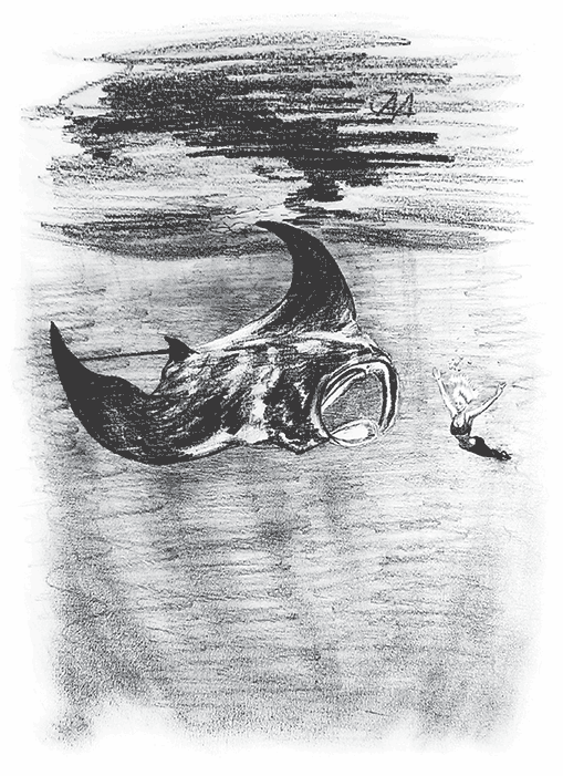 Ныряли три дня по восемь часов в день. И вот однажды, на грани полного изнеможения, я повстречал морских дьяволов. Четырехметровых скатов.