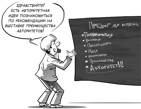 • можно назначить встречу, основываясь на том, что вы вместе были на выставке, симпозиуме, конференции. Можно ссылаться на выставку, даже если вы не встречались там с этим клиентом. Скорее всего, он либо кто-нибудь из его коллег был на той выставке, а значит, вам могли дать его контакты;