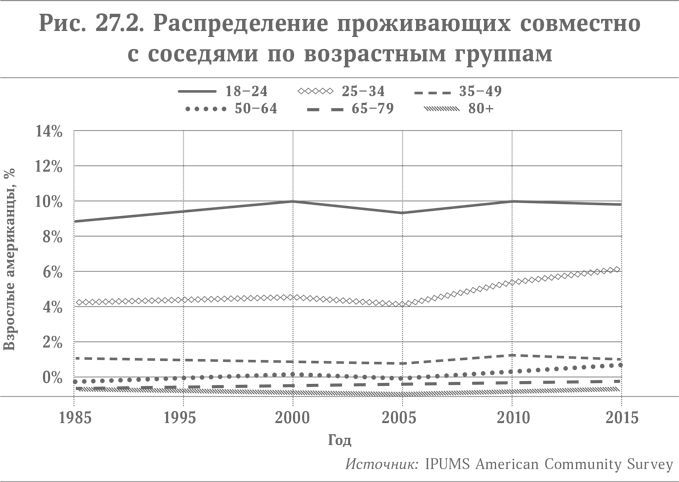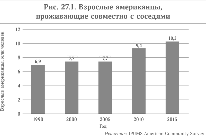Раньше проживание с соседями считалось недолгим промежуточным этапом – от момента, когда человек покидает родительское гнездо, до момента, когда он обзаводится семьей или покупает собственную квартиру. Сегодня людям нравится проводить многие годы в атмосфере университетского общежития. Чем больше они склоняются к такому образу жизни, тем больше он станет влиять на будущее американской семьи, поскольку это экономически оправданный способ жить в свое удовольствие, не обременяя себя брачным партнером и детьми. Домовладельцы и бизнес развернулись на 180 градусов и стали благожелательно относиться к такому образу жизни, предлагая его представителям больше льгот и скидок, чем стабильным семьям. Если через несколько лет людям захочется от жизни большего или их потянет к былой независимости, этот тренд может угаснуть. Но пока цифры говорят только о том, что он становится все сильнее.