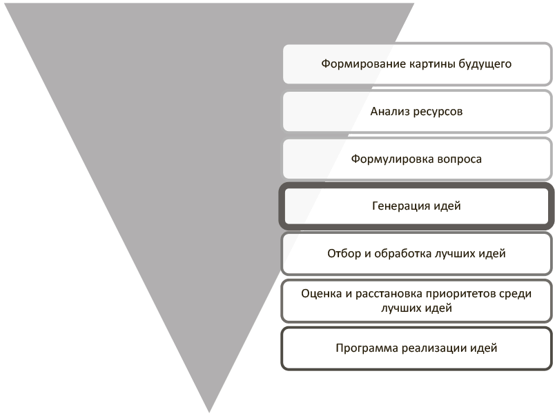 • Пятый шаг: отбор. Наконец, мы отбираем из множества вариантов самые, на наш взгляд, эффективные ответы – способы получения идеального результата.