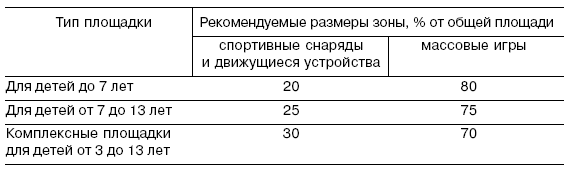 Оптимальные размеры одной площадки – 100 м2. На этих площадках не менее половины площади рекомендуется отводить для отдыха взрослых с детьми в колясках.