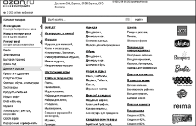 Поскольку меню размещено на каждой странице, то на продвигаемые страницы будет передаваться значительно больший вес (потому что он будет передаваться с каждой страницы, на которой присутствует меню). Таким образом, продвигаемые страницы всегда будут выше в выдаче. Приведем в пример крупнейший интернет-магазин ozon.ru.